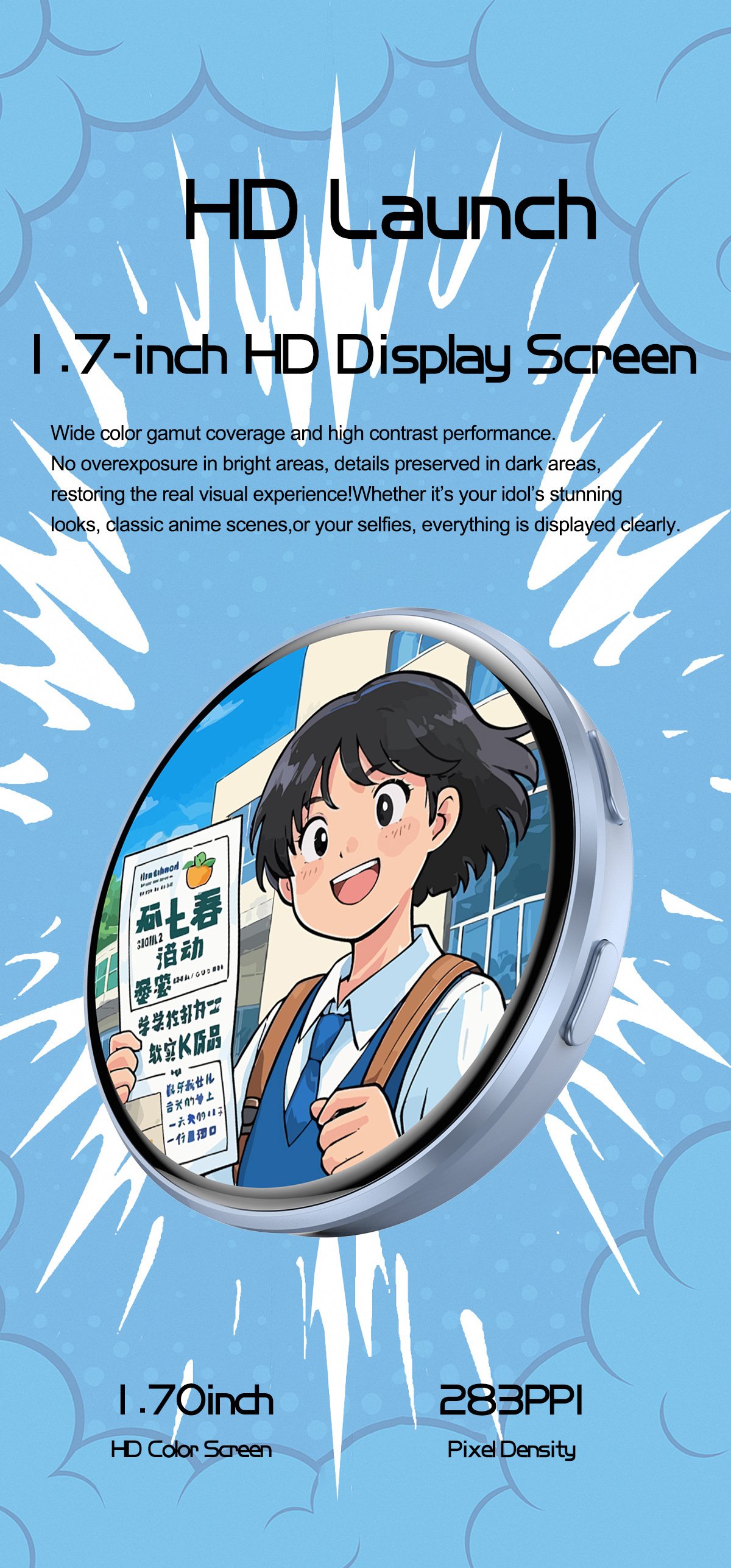 Innovative Display Photo Album Badge:Touchscreen 1.7" IPS with 2.5D curved glass, High-definition display with vibrant colors—show your favorite moments